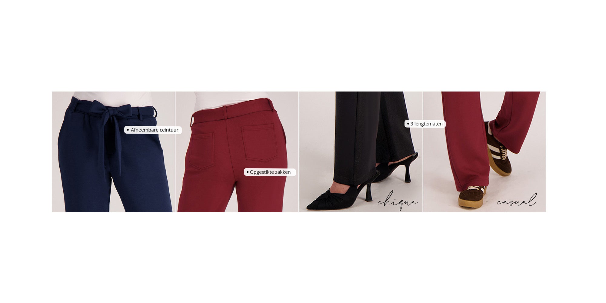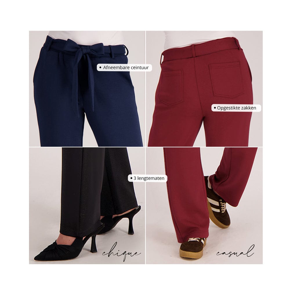 elastische tailleband met riemlusjes en los ceintuur naar wens wel of niet te gebruiken