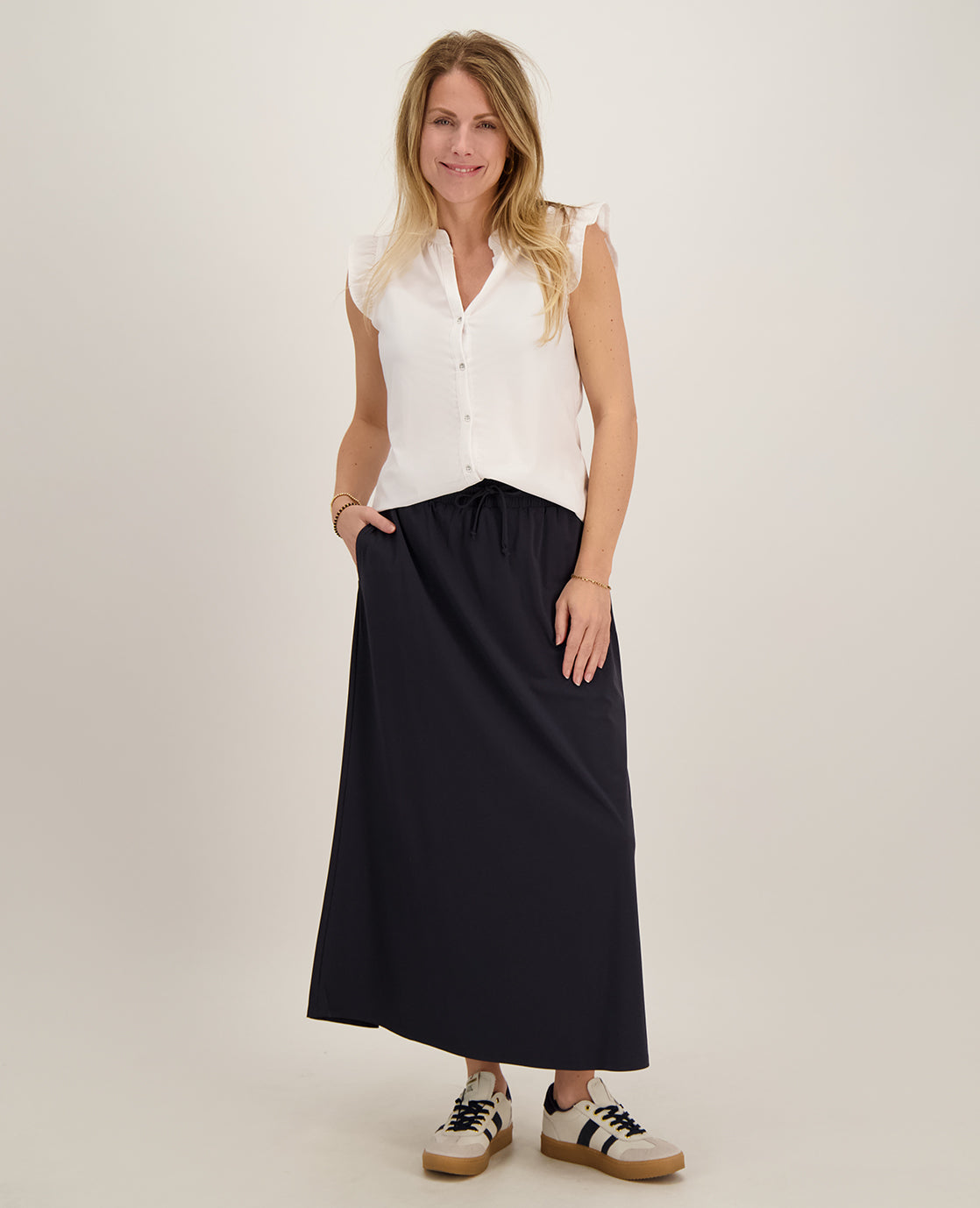 Model draagt maat S (36). Haar lengte is 175 cm