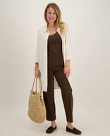 Linnen Blend; Natuurlijk, luchtig, stijlvol en tijdloos! Deze zomerse favoriet combineert de pure uitstraling van linnen met de soepelheid van viscose. Het resultaat is een stof die licht aanvoelt, ademt en prachtig om het lichaam valt.