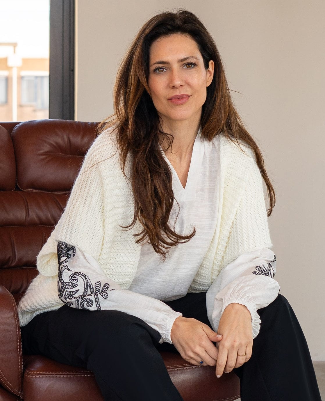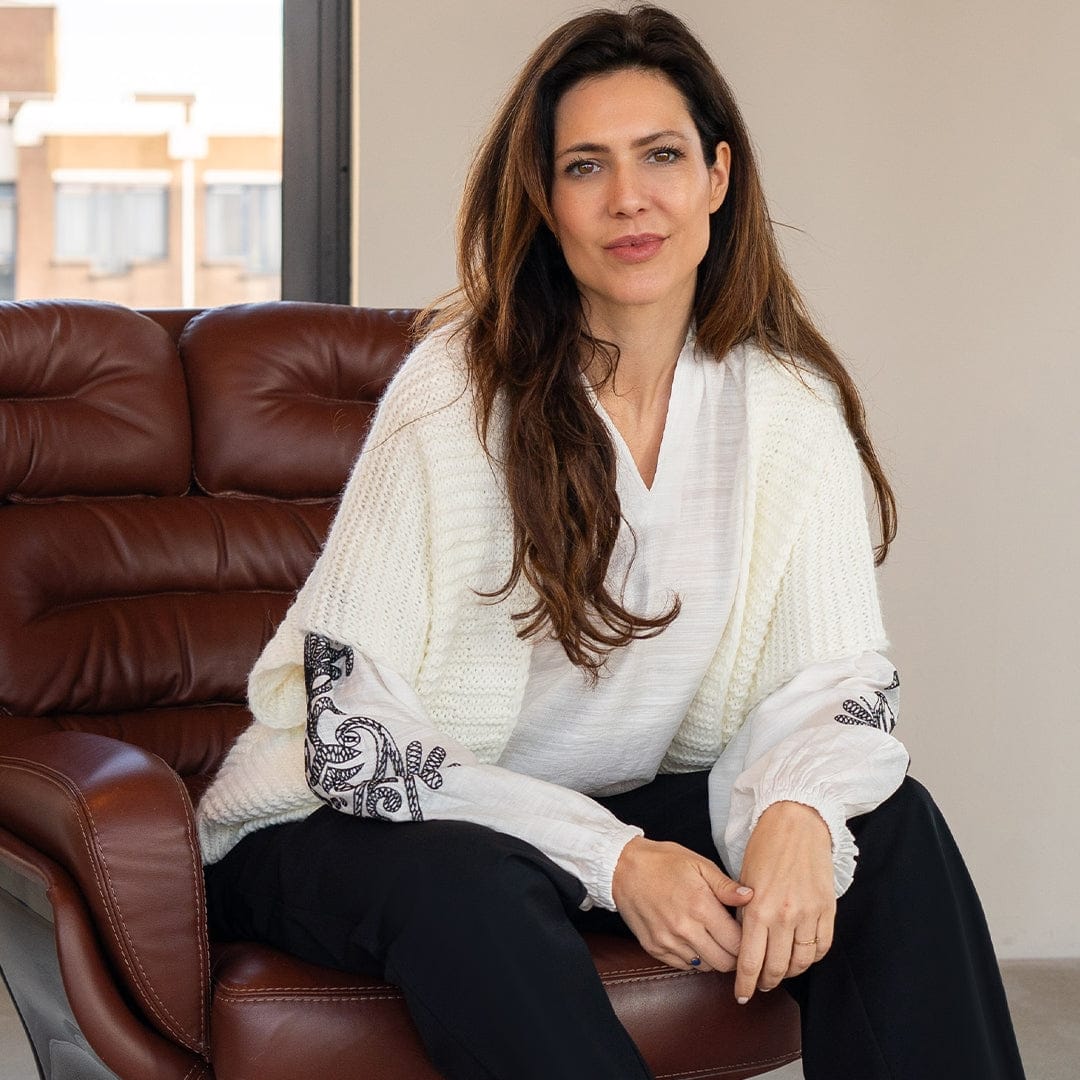 Model draagt maat S/M (36/38). Haar lengte is 176 cm