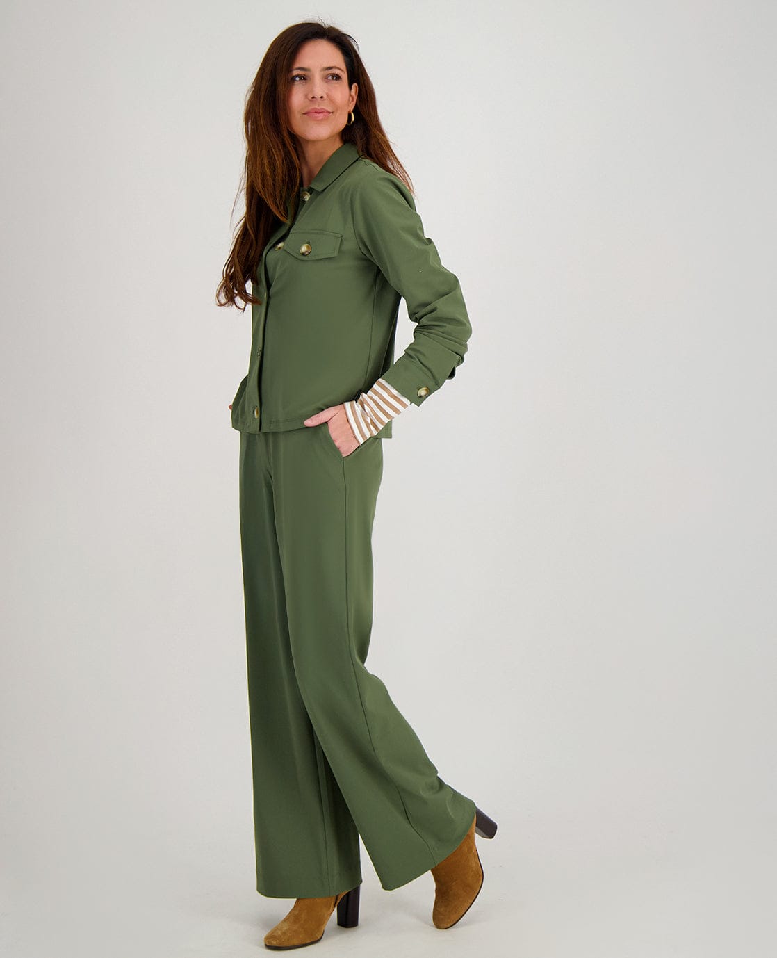 Travelstof heeft een comfortabele stretch, is ademend, snel drogend, niet statisch, duurzaam, slijtvast, makkelijk wasbaar, verkleurt niet en schijnt niet door. Juist die unieke comfortabele stretch maakt deze kwaliteit zo geliefd omdat je figuur prachtig uitkomt.