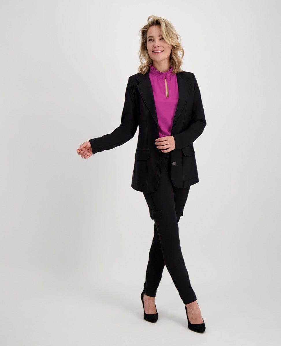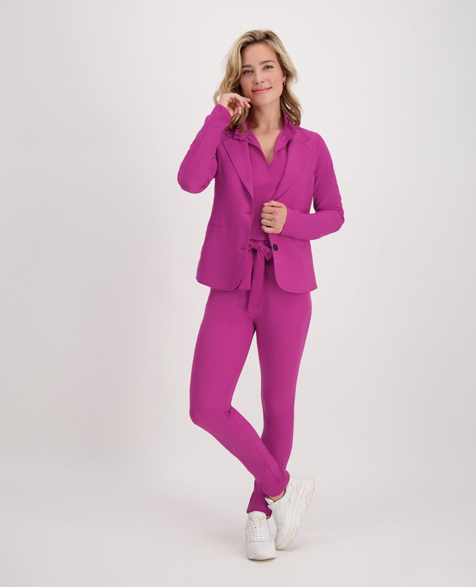 Travelstof heeft een comfortabele stretch, is ademend, snel drogend, niet statisch, duurzaam, slijtvast, makkelijk wasbaar, verkleurt niet en schijnt niet door. Juist die unieke comfortabele stretch maakt deze kwaliteit zo geliefd omdat je figuur prachtig uitkomt.