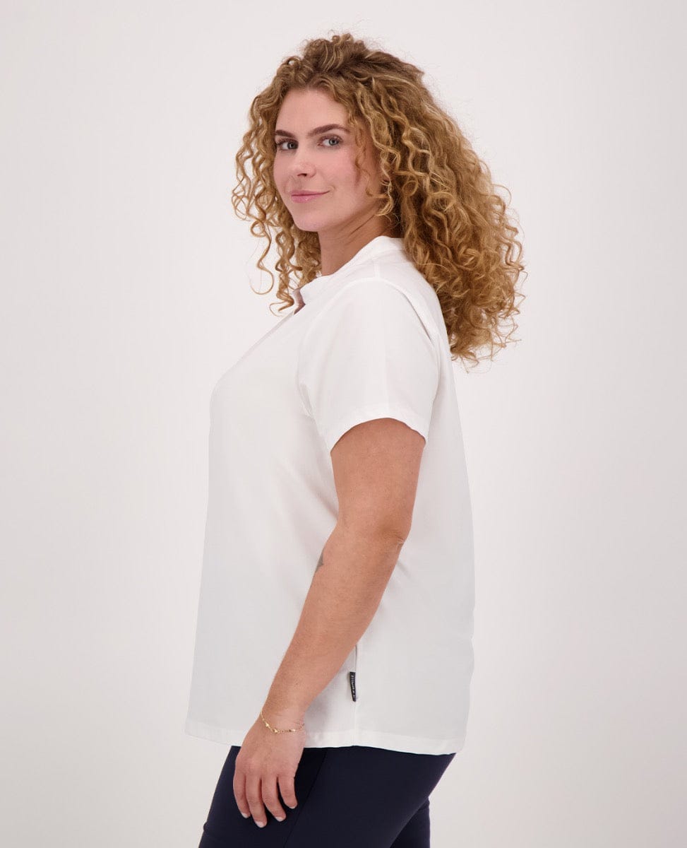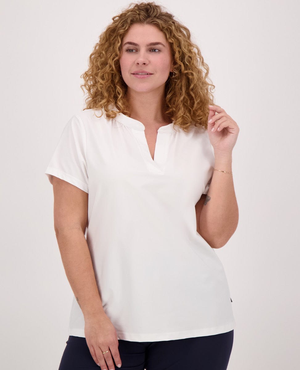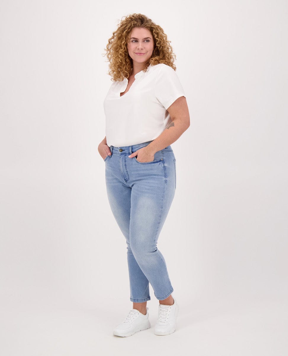 Model draagt maat 46. Haar lengte is 177 cm